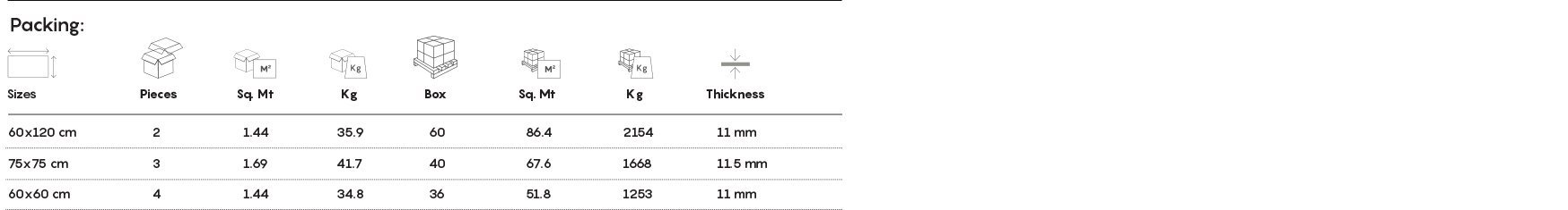 60 – 120, 60 – 60, 75 – 75 |